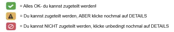 Aktionen ein grüner Haken ( = Zuteilung möglich) angezeigt wird.